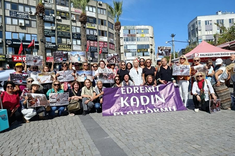 “Türkiye yalnızca sözlü kınamalarla yetinmemeli; diplomatik, siyasi ve insani her türlü girişimi hayata geçirerek bu katliamların durdurulması için aktif bir rol üstlenmelidir" diyen Edremit Kadın Platformu üyesi kadınlar katliamın durdurulması için taleplerini şöyle sıraladı: