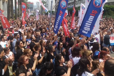Eğitim emekçileri, yakın zamanda yayımlanan “Kamuda Tasarruf ve Verimlilik” genelgesi ile hem kendi haklarına yönelik hem de eğitimin kamusal bir hak olmasına yönelik bir saldırıyla baş başa. Peki, eğitimciler yalnızlaştırılarak, ayrıştırılarak yaşananları izlemekle mi yetinecek yoksa sendikal bürokrasiye kapılmadan tabandan güçlü bir ses olarak eğitim hakkına yönelik taarruzu püskürtecek mi? Bu soru önümüzdeki süreçte tartışılması gereken önemli bir nokta. Bu tartışmaya katkıda bulunabilmek açısından 10 Mayıs’taki eyleme ve eğitime yöneltilen saldırılara dair farklı iş yerlerinden 5 eğitim emekçisiyle görüştük.