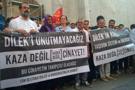 Sirkeci Büyük Postane binası restorasyonundan restoratör olarak çalışan ve alınmayan önlemler nedeniyle iş cinayetine kurban giden Dilek Dayar için yaşamını yitirdiği yerde eylem yapıldı.