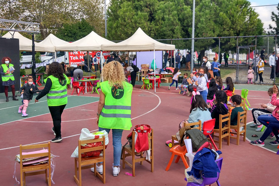 “Çocukların bir arada etkileşim halinde olması psikolojik olarak onları rahatlatıp iyi gelecektir” diyen Çam, “Yaşamlarında köklü bir değişiklik oldu bu çocukların ve birden rutinde olan tüm yaşamları değişti. Çadır kentlere olan uyum süreçleri bir arada oyun oynayıp vakit geçirerek daha kolay hale gelebilir diye düşünüp hareket ettik” dedi.