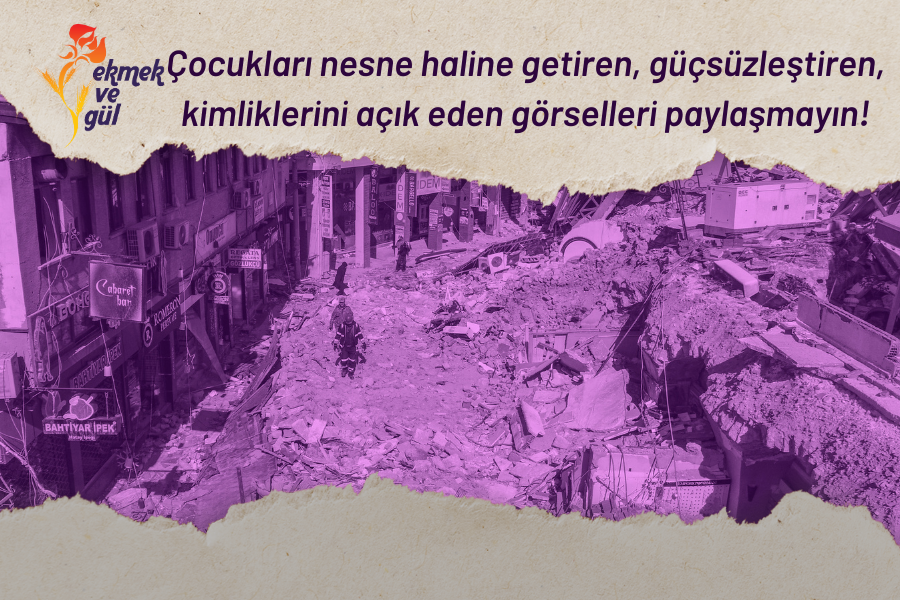 Zor günlerden geçiyor, tarifsiz acılar yaşıyoruz. Öfkemiz büyük. Bir yandan da dayanışarak yaraları birlikte sarmaya, birbirimize iyi gelmeye, iyi olanı yapmaya çalışıyoruz. Bu süreçte depremden etkilenmiş çocuk görsellerinin çeşitli şekillerde yaygın olarak paylaşıldığını görüyoruz. Ekmek ve Gül gruplarımız üzerinden bu görsellerin hem depremzede çocukların duygularını incittiğini hem de deprem dışı bölgelerdeki çocukların ruhsal durumlarını olumsuz etkilendiğini öğreniyoruz.
