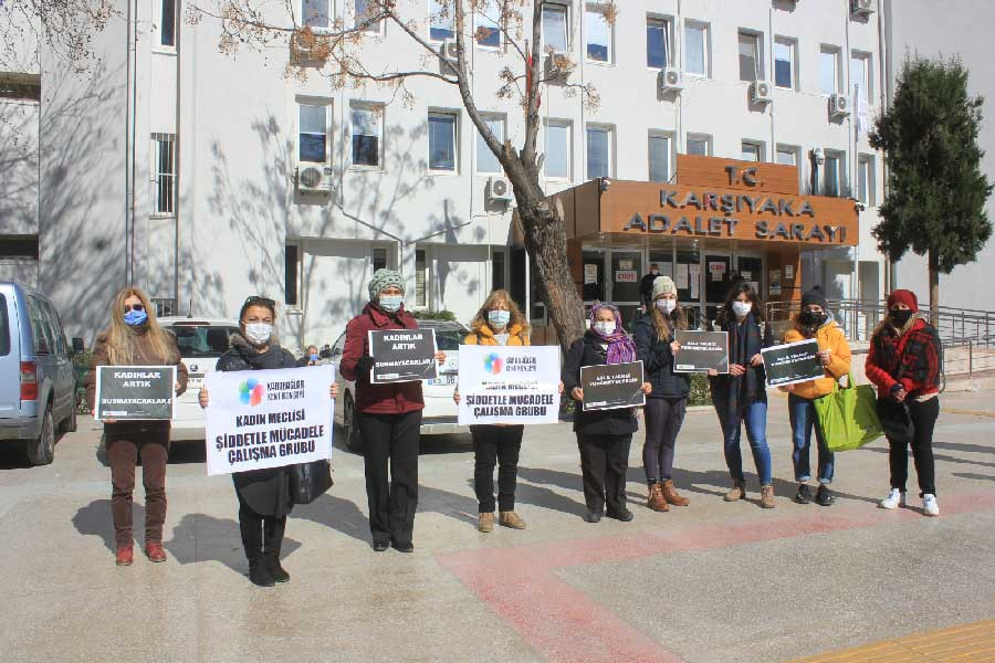 Davayı takip eden Karabağlar Kent Konseyi Kadın Meclisi Şiddetle Mücadele Grubundan Funda Özdemir de yasaların uygulanmasını talep ettiklerini söyledi.