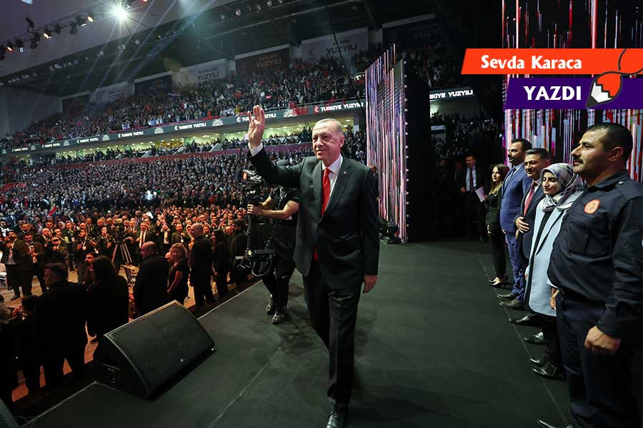 AKP kurmaylarının “Ülkenin gelecek tasarımının ilanı olacak” diye sunduğu “Türkiye Yüzyılı” buluşmasında Erdoğan, geçmişe dönük hamaseti bol, geleceğe dönük sözü “Bizi seçmezseniz, ülke çöker” olan bir konuşma yaptı.