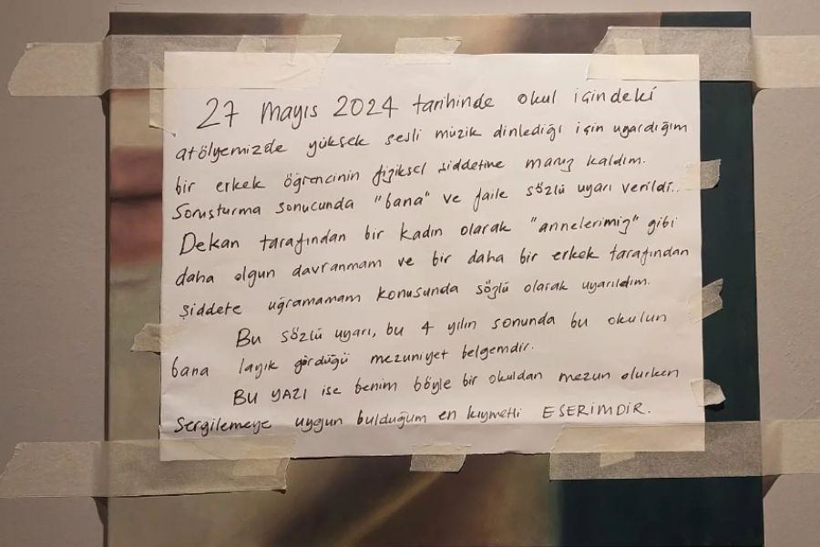 Hacettepe Üniversitesi Güzel Sanatlar Fakültesi 2024 Mezuniyet sergisi 28 Haziran tarihinde gerçekleşti. Sergi sırasında bir kadın öğrenci aynı bölümde okuduğu erkek öğrenci tarafından yaşadığı şiddeti bir kağıdın üzerine yazarak mezuniyet eserlerinin üzerine yapıştırarak duyurdu.