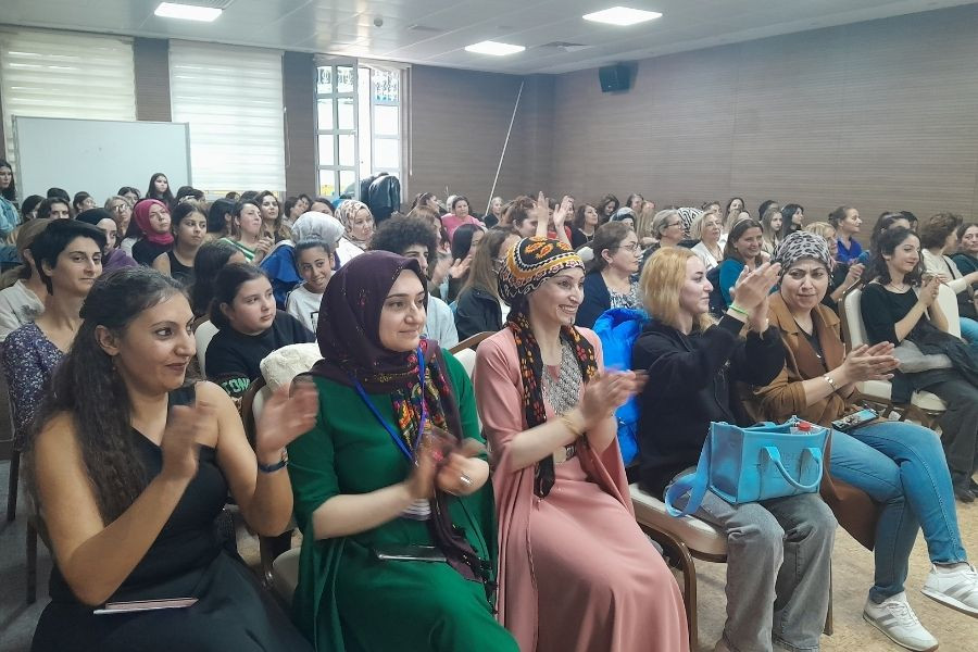 Açılışı yapan dernek üyesi İlknur Haylaz, 2013 yılında Gezi hareketinin güçlenmesiyle mahallelerinde 300 kadın ile yapılan forumun ardından derneğin kurulduğunu, ilk kurulduğunu çok az üyesi olan derneğin üye sayısının on yılın ardından binlere ulaştığını anlattı. "Kadınlar derneğe girerken çekiniyorlardı ama çıkarken adımlarını daha sağlam basarak çıktılar" diyen Haylaz, kadına yönelik şiddet davalarını da takip ettiklerini şöyle anlattı: "Eşi tarafından yakılarak katledilen Gönül çalışkan için mücadele ile ilk eylemimizi yaptık, okul çıkışı katledilen Helin Palandöken için mücadele ettik. Helin ölmeseydi 23 yaşında olacaktı belki bugün sahnede yan yana olacaktık. Fatma Şengül, Eda Çakar, Seher Çatalca gibi pek çok kadının davasını takip ettik."