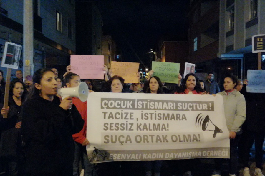 Esenyalı Kadın Dayanışma Derneği Başkanı Adile Doğan, çocuğun ailenin tepkisi ve çığlıklarıyla istismarcı erkekten kurtulduğunu ifade ederek, "Bugün burada toplanan kolluk güçleri günlerce onu arayıp bulamayacak. Biz bu tramvayı çok yaşadık, biz çocukların ölü bedenlerini bulmaktan yorulduk. Biz geleceğimize ve çocuklarımıza sahip çıkmak istiyoruz ama çocuklar için 'küçüğün rızası var' diyenler buna engel oluyor. Bu memlekette çocukları koruyan yasalar yapmak yerine 'küçüğün rızası var' deniliyor. Çocuk tecavüzcüye istismarcıya ses çıkarmayınca istismarcı iyi halden indirim alıyor ve denetimli serbestlikle bırakılıyor yüzlerce vaka geliyor derneğimize. Biz adaletimizi mücadele ederek kazanacağız, istismar edenin gerekli cezayı alana kadar da mücadele edeceğiz." dedi.