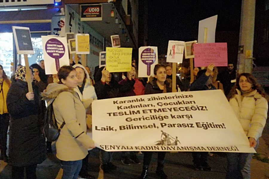 Esenyalı Kadın Dayanışma Derneği olarak, çocuklarımızın laik, bilimsel, ücretsiz bir eğitim alacağı, eşit ve özgür yaşayacağı bir ülke için bu karanlık düzeni yan yana gelerek birlikte değiştireceğiz!”