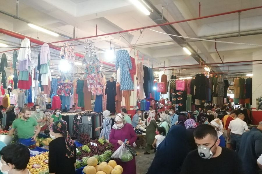 Pazarın girişinde karşılaştığımız bir kadın şöyle anlatıyor; "Pazarda fiyat hiç düşmüyor, hala aynı pahalılıkta. Giysi desen o da aynı, onu hiç alamıyoruz. Bu koronadan sonra biraz daha düşmeliydi. Korona yüzünden bir sürü insan işsiz kaldı, ee şimdi ihtiyaçlar daha da artıyor. Şu an biber 4 lira misal, asgari ücretle geçiniyoruz, garibana günah değil mi?"
