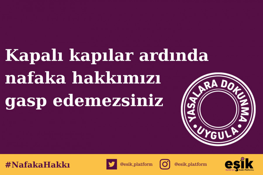 Yıllardır gündeme alınıp geri çekilen kadınların nafaka hakkına saldırı 6. Yargı Paketi ile, yeniden gündeme getirildi. Eşitlik İçin Kadın Platformu (EŞİK) bir hafta içinde Meclis'e sunulacağı söylenen pakete dair yaptığı basın açıklamasında ayrıntıların açıklanması çağrısı yaptı, hedefte olanın sadece kadınların nafaka hakkı değil Medeni Kanundaki tüm hakları olduğunu vurguladı.