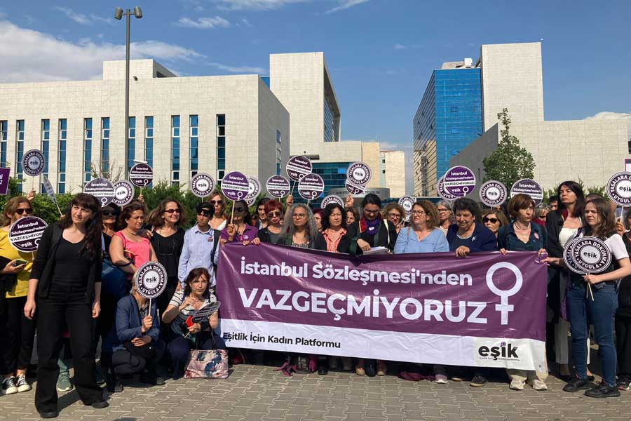 Eşitlik İçin Kadın Platformu- EŞİK, kitle örgütlerinin, baroların, sendikaların, kadın örgütlerinin ve tüzel kişilerin İstanbul Sözleşmesi’nin fesih kararının iptali için Danıştay’a açtığı davaların 3.’sü 14 Haziran’da Danıştay 10. Dairesinde görülecek. EŞİK, ‘Bu yanlıştan dönün’ çağrısı yaparken, “Sadece İstanbul Sözleşmesi’ni değil, Anayasa’yı, insan hakları hukukunu ve hukukun üstünlüğünü savunuyoruz, mücadeleden vazgeçmeyeceğiz” dedi. Açıklama şöyle:
