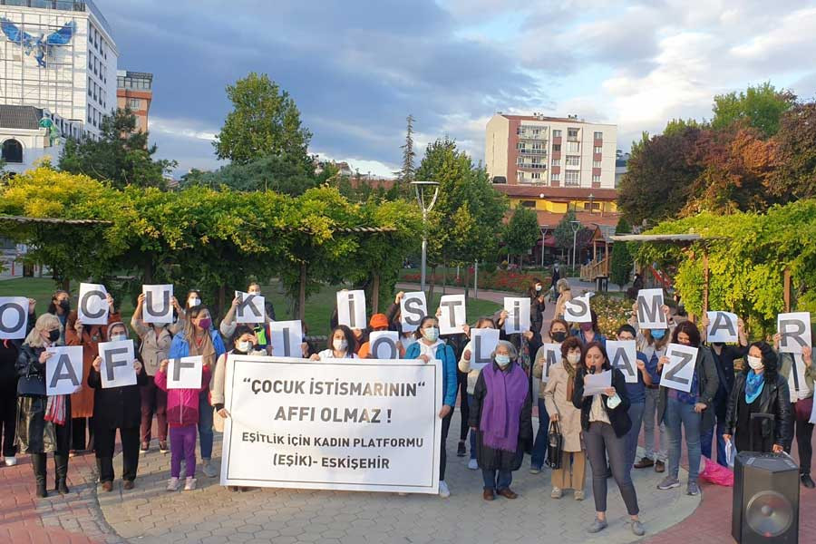 Eşitlik İçin Kadın Platformu (EŞİK) Eskişehir Kampanya Grubu’nun çağrısı ile Haller Parkı’nda bir araya gelen Eskişehirli kadınlar, “Çocuk İstismarcılarına Af, İstismarcılara Teşvik, Tüm Çocuklara Tehdittir” diyerek çocuk istismarına affı gündeme getiren TİHEK Başkanı Süleyman Arslan ve AKP’li vekil Abdullah Güler’e tepki gösterdi. Kadınlar eylemde kağıtlardan “Çocuk istismarının affı olmaz” yazdı.