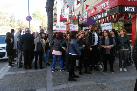 Buca’da da kadınlar, kadın tiyatrocuların sahneye çıkarılmamasına tepki göstererek açıklama yaptı.
