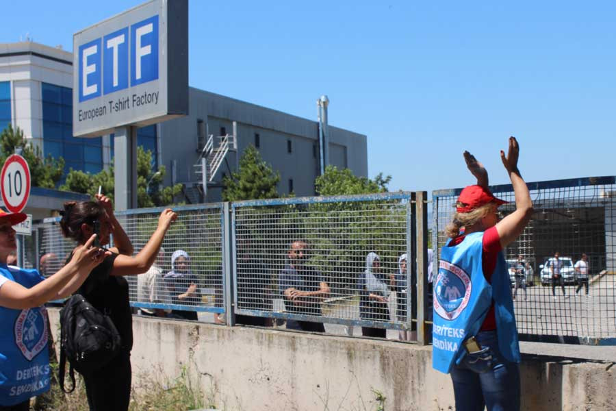 Tuzla’daki ETF Tekstil patronunun, 30 Temmuz’da üretimi durdurup fabrikayı kapatacağını açıklamasının ardından, kıdem ve ihbar tazminatları ile ikramiyelerinin verilmeyeceğini öğrenen işten çıkarılan işçiler fabrika önünde direnişe geçti. DERİTEKS’in örgütlü olduğu fabrikada patron, işçileri ara bulucu vasıtasıyla imza atmaya zorlarken işten çıkarılan işçiler ise yaşadıklarına tepki göstererek, “Bayramı bize zehir ettiler” dedi.