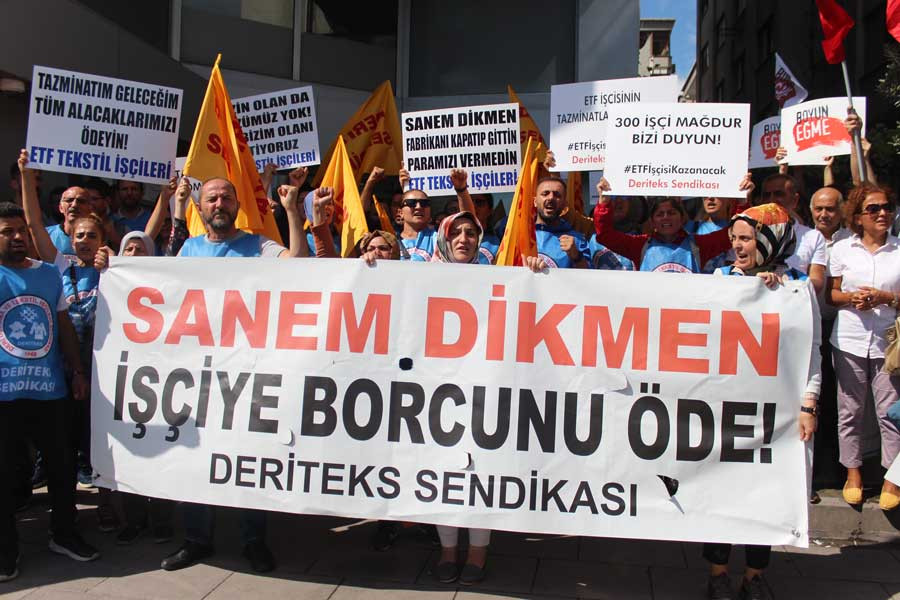 İstanbul Tuzla’da bulunan ETF Tekstil’in kapanmasının ardından işçilerin başta tazminatları olmak üzere alacakları için başlattıkları direniş sürüyor. ETF işçilerinin çoğunluğunun henüz eğitim çağında olan çocukları var, son aylık ücretleri ile bu dönem okul masraflarını gidermeyi düşünen işçiler hâlâ ücretlerini alamadıkları için onu da karşılayamadı. Tek çareyi okul alışverişini ertelemekte bulan işçilerin kimi ise eğitim masraflarını karşılayamayacağı için çocuğunu üniversiteye göndermekten vazgeçti. İşçiler, alacaklarının sadece kendilerinin değil çocuklarının da geleceği olduğunu, patron Sanem Dikmen’in çocuklarının eğitim hayatını da gasbettiğini söylüyor.