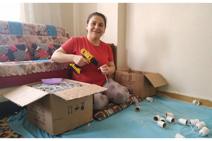 Fatma’nın iki çocuğu var; biri ilkokula gidiyor, diğeri ise henüz 4 yaşında. Eşi bir restorantta servis yapıyor; aldığı asgari ücret. “Eşimin maaşı anca işsizlik döneminden kalan borçları ödüyor” diyerek anlatmaya başlıyor Fatma: “Eşimin tiroid hastalığı var, potasyum seviyesi yükselince yoğun bakıma kaldırılacak kadar rahatsızlanıyor, o dönemlerde çalışamıyor. Yedi ay önce yine rahatsızlandı, sonrasında 6 ay iş bulamadı. Ondan öncesinde günlük işlerde çalışıyordu zaten, düzenli bir iş bulamıyordu. Şimdi işsizlik döneminden kalan borçlarımız var; bir de çocuk, ev masrafları, kira, fatura... Asgari ücretle zaten hiçbir geçim sağlayamıyorsun. Eğer ev kendininse, eğer hiçbir borcun yoksa, sadece bir tek faturan varsa, çoluk çocuğun da yoksa mükemmel bir şekilde geçinirsin. Diğer türlü asgari ücretle geçim imkansız. Biz de hiçbir zaman geçinemedik zaten. Anca toparlamaya çalışıyoruz.”Eve gireni yetirmek, idare etmek Fatma’ya düşüyor. Her şeyden kısmak yetmeyince, çocuklara bakacak kimse de olmayınca, o da çareyi ev eksenli çalışmakta bulmuş. Şimdilerde ampul duylarını yuvalarına vidalıyor. Kilolarca ağırlıktaki çuvalları eve taşıyor ve günde en fazla üç saat uyuyarak, durmadan çalışıyor...