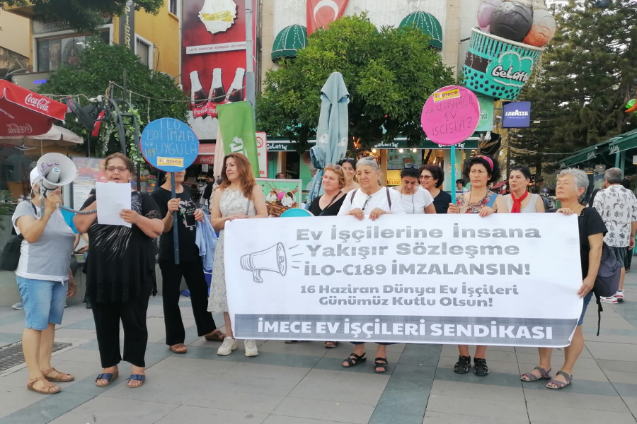 16 Haziran Dünya Ev İşçileri Günü için, İmece Ev İşçileri Sendikası ILO C189'un imzalanması çağrısı ile Antalya ve İstanbul'da basın açıklamaları gerçekleştirdi.