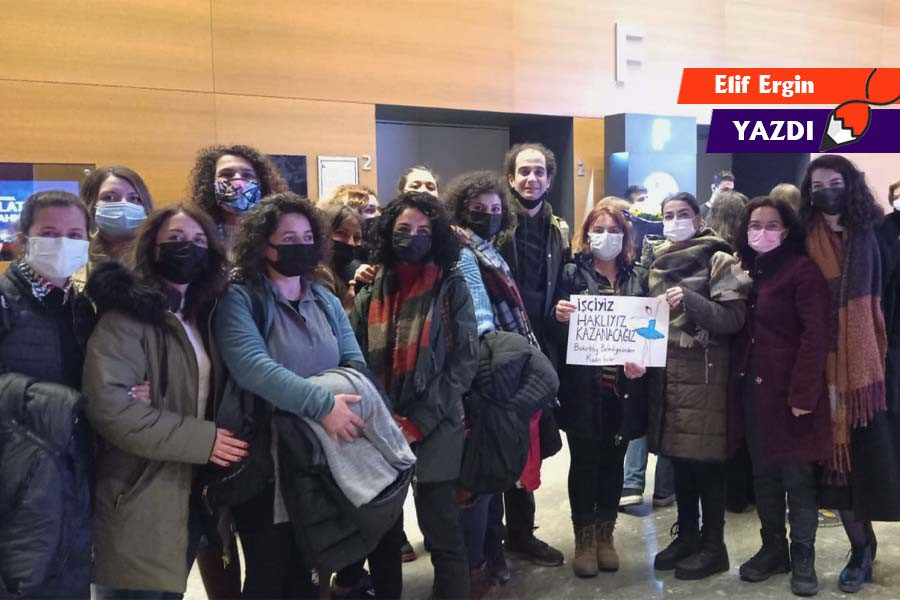 İstanbul’da son iki haftadır havalar çok soğuk. Ayaklar ayakkabı içinde donuyor, maske takmak bir nebze sevindiriyor; hiç değilse yüzü sıcak tutuyor diye. Böyle soğuk bir günde, tüm gün soğukta beklemiş, çift kat çorap giymiş, kat kat kazak giyip sarınıp sarmalanmış yaklaşık 20 kadınla Bakırköy Marmaray istasyonunda buluşuyoruz. 90 güne yaklaşan Bakırköy Belediye İşçilerinin grevinden kadınlar Mercan Selçuk Dans Topluluğu’nun Babamın Şarkıları temsilini izleyecekler.