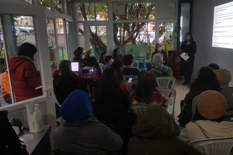 Kadın mücadelesinin, Mirabel kardeşlerin hikayesinin anlatıldığı ve kadınların bir araya gelmesinin öneminden bahseden Kasım’ın tarihini ve kadın mücadelesini anlatan sinevizyon gösterimiyle başlayan etkinlikte, Eğitim Sen 3 Nolu Şube Eğitim Sekreteri Meral Gülşen kadınların neden şiddete maruz kaldığına dair bir sunum yaptı. Etkinlik katılan kadınlardan birinin şiddetin sadece fiziksel olmadığını bastırılmanın da şiddet olduğunu belirtmesi üzerine psikolojik, cinsel ve ekonomik şiddet detaylı olarak tartışıldı.