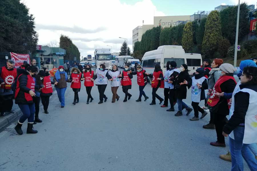 Farplas’ta işten atılan işçilerin geri alınması ve sendika hakları için direnen işçiler mücadelelerini sürdürüyor. Fabrika önünde “Yaşasın sınıf dayanışması”, “Direne direne kazanacağız” ve “Yaşasın kadın dayanışması” sloganları atan işçiler, halaylar çekiyor. İşçilere destek ziyaretleri sürüyor.