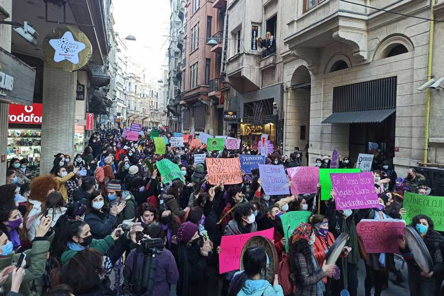 İstanbul Taksim’de 8 Mart günü düzenlenen Feminist Gece Yürüyüşü sırasında attıkları sloganlar nedeniyle “Cumhurbaşkanına hakaret” ve “Kanuna aykırı toplantı ve yürüyüş” suçlarından haklarında soruşturma başlatılan 17 kadın hakkında 7 yıl 8 aya kadar hapis cezası istemiyle dava açıldı.