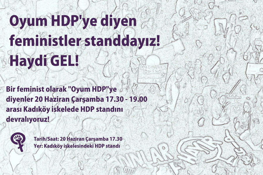 24 Haziran seçimlerinde HDP’ye oy vereceklerini açıklayan bir grup feminist kadın İstanbul Kadıköy İskeledeki HDP standını devralacak.