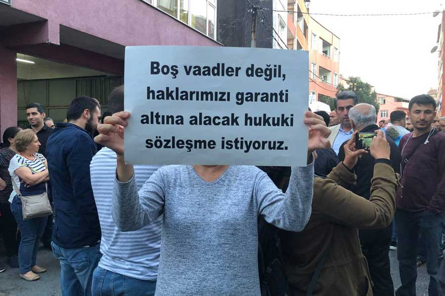 “Bizi kötü etkiledi, psikolojimizi bozdu sinirlerimizi bozdu. Evimizde huzur kalmadı. Şu anda evimizin dolabı boş, çamaşırlarımız yığılı. Komşumuz susuz, elektriksiz, aç. Gelen yardımlarla yiyeceklerle insanlar ayakta duruyor. Bu şekilde bize zulüm ediliyor bu şekilde polislere bizi dövdürüyorlar. Yazık değil mi bize? Bize kentsel dönüşüm dediler, biz adil bir kentsel dönüşüm istiyoruz, tabii ki güzel bir yerde oturmak istiyoruz ama borçlanmadan oturmak istiyoruz. Adil bir şekilde borçlanmak istiyoruz, borçlanırsak evimizi bize ne zaman verecek, nereden verecek, nasıl verecek bizim önümüze doğru dürüst bir plan sunmadan kentsel dönüşüme gel imzanı at, anlaş diyorlar. Bana 1000 lira kira yardımı veriyor. Benim aldığım 2500 lira 1000 lira da sen veriyorsun ben onun neresiyle kiraya çıkayım, ben ne yiyeyim, eşim vefat etti 3 ay oldu ben ne yapacağım tek başıma bir kadın olarak, nereye gideyim? Ev kiraları 4000 lira, elektriği, suyu, doğal gazı ne ile ödeyeyim? Biz adil bir kentsel dönüşüm istiyoruz, hırpalanmak istemiyoruz, zaten zamlardan sıkıntılardan bunalmışız. Evimize çöküyorlar, kafamıza çöküyorlar, gasbediliyoruz.”