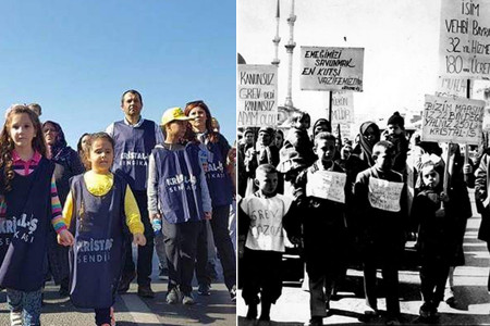 İşlerinden olan cam işçilerinin başlattığı yürüyüşün en ön saflarında çocukları vardı. Bu fotoğraf yıllar öncesinden tanıdık olduğumuz bir manzaraya benziyor...