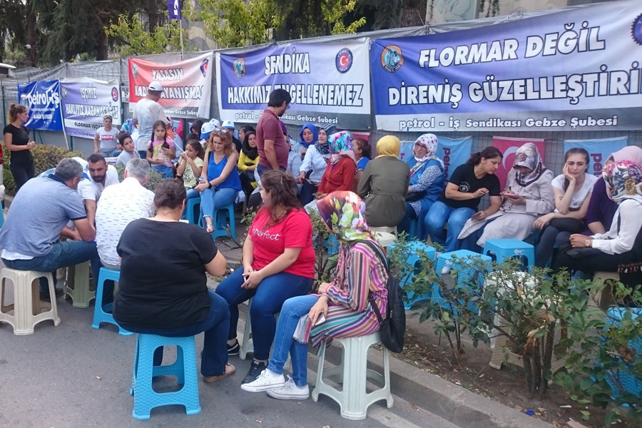 Gebze Organize Sanayi Bölgesi’nde (GOSB) yer alan Flormar kozmetik fabrikasında Petrol-İş’te sendikalaştıkları gerekçesiyle işten çıkarılan çoğu kadın 132 işçinin 15 Mayıs’tan bu yana fabrika önünde sürdürdükleri eylem 76. gününde. Mücadelelerini ilk günden bu yana fabrika önünde kararlılıkla sürdüren işçilerle direnişlerini konuştuk.