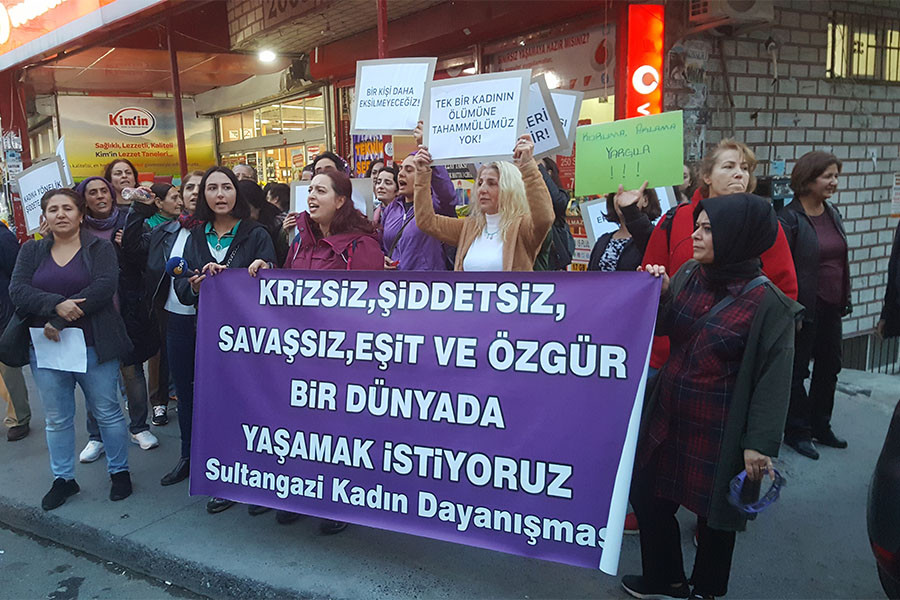 Sultangazi Kadın Dayanışması, 25 Kasım Kadına Yönelik Şiddete Karşı Uluslararası Mücadele ve Dayanışma Günü vesilesiyle sokağa çıktı. Onlarca kadın “Kadın, yaşam, özgürlük”, “Erkek adalet değil, gerçek adalet” sloganları ve “Krizsiz, şiddetsiz, savaşsız, eşit ve özgür bir dünyada yaşamak istiyoruz” pankartıyla Eski Karakol’dan Gazi Cemevi’ne yürüdü. Yoldan geçen kadınlar ve Gazi Mahallesi esnafı da kadınlara destek verdi.