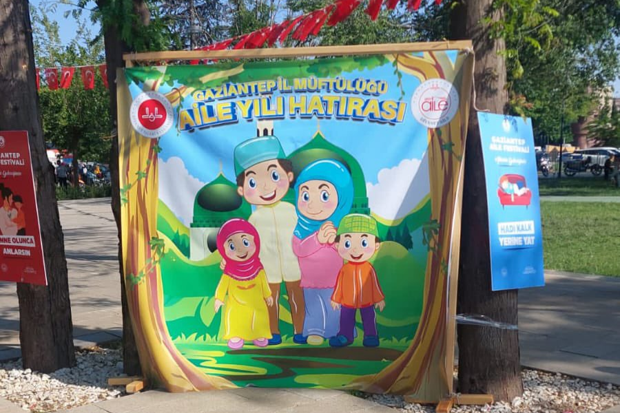 Gaziantep İl Müftülüğü tarafından “Aile Yılı” etkinlikleri kapsamında hazırlanan önünde fotoğraf çekilecek hatıra fotoğrafı panosu, sosyal medyada ve kamuoyunda tepkilere yol açtı. Hatıra fotoğrafı çekilmesi amacıyla 16 Mayıs'ta Gaziantep Festivaller Parkına yerleştirilen bu fotoğraf alanında, erkek çocuk takke, kız çocuk ise başörtüsüyle resmedildi.