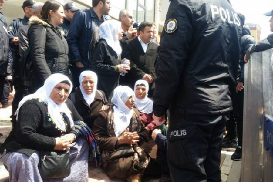 Cezaevine doğru yürüyen ailelerin önü polis tarafından kesildi. Polisin “Valiliğin kararı var, bu alanda eylem yapamazsınız. Yasak” sözlerine aileler, “Biz bu konuda ısrarcıyız, eylemimizi yapmaktan vazgeçmeyeceğiz. Çocuklarımızın yaşam hakkını savunuyoruz” şeklinde karşılık verdi.
