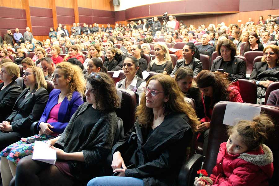 Etkinlikte konuşan Arzu Çerkezoğlu, DİSK’in geçtiğimiz günlerde gerçekleşen Genel Kurulunda, kadın işçilerin daha fazla söz ve karar sahibi olması için tüzük değişikliğine gittiklerini aktardı. “Kadın mücadelesi olamadan hiçbir mücadele kazanılamaz” diyen Çerkezoğlu, kadınların daha işe alımda eşitsizliğe maruz kaldığını söyledi. Türkiye’de işsizliğin büyüdüğünü, çalışan kadıların ise yaşadığı emek sömürüsünün derinleştiğini dile getiren Çerkezoğlu, “DİSK olarak emek alanının giderek daha fazla kadınlaştığı sayı olarak arttığı bir dönemdeyiz. Kadının özgürleşme mücadelesinin her alanda yaşadığı baskıya karşı emek alanında da mücadeleyi örgütleme ve büyütme kararlılığındayız. Kadınlar sendikalı, örgütlü olmadıkça özgürlük mücadelesinin bir ayağı eksik kalacaktır” dedi.