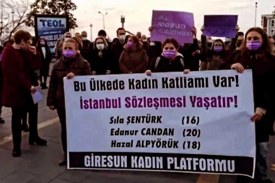 Giresun Kadın Platformu, Sıla Şentürk’ün katledilmesine ilişkin Atatürk Meydanı’nda basın açıklaması gerçekleştirdi. Çok sayıda kadının katıldığı açıklamada, “Bu ülkede kadın katliamı var. İstanbul Sözleşmesi Yaşatır” pankartı taşındı.