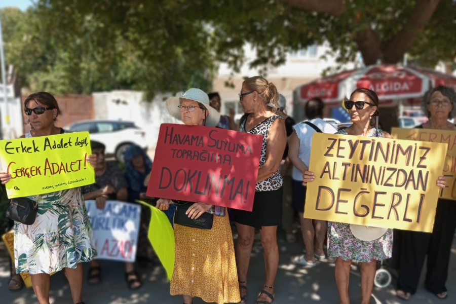 Kadınlar yalnızca kadın cinayetlerine değil, doğayı tehdit eden yeni maden yasasına da tepki gösterdi. Gömeç’te yaşamı ve doğayı savunan kadınlar, yeni yasa ile birlikte çevresel yıkımın hızlanacağına dikkat çekti. “Sermaye toprağımızdan defol”, “Zeytinimiz altınınızdan değerli” dövizleri taşındı.