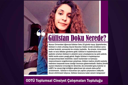 ODTÜ’lü kadınlar, 24 gündür kayıp olan Munzur Üniversitesi öğrencisi Gülistan Doku için açıklama yaptı. Topluluk, bilgi kirliliğinin giderilmesi için sürecin daha şeffaf yürütülmesini istedi.