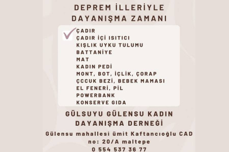 Gülsuyu Gülensu Kadın Dayanışma Derneği'nden ihtiyaç listesi yayımladı