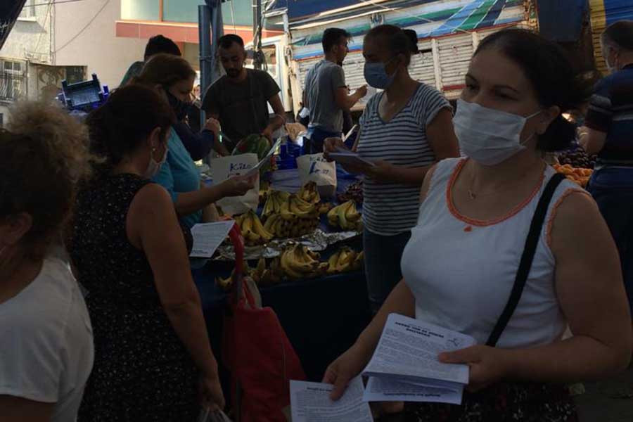 Güzeltepe Ekmek ve Gül grubu Güzeltepe pazarında çocuk istismarına karşı bildiri dağıttı. Kadınlar birlikte mücadale çağrısı yaparken, kimi kadınlar "Pandemi sürecinde üstümüze basa basa doymadılar, pandemide ölmedik şimdi çıkardıkları yasalarda öldürmeye çalışıyorlar" dedi.