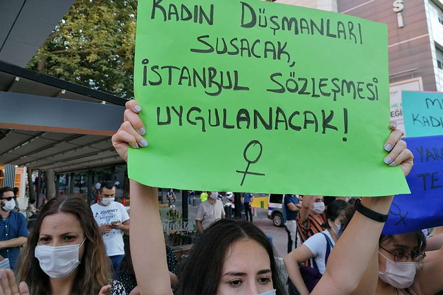 Cumhurbaşkanı Recep Tayyip Erdoğan'ın kararı ile Türkiye’nin İstanbul Sözleşmesi’nden çekilmesine karşı kadınlar tüm ülkede haklarına ve İstanbul Sözleşmesi'ne sahip çıkmak için sokakta...