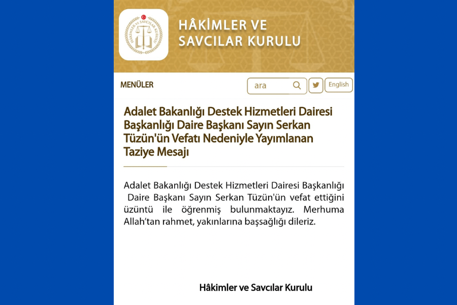 Hakimler ve Savcılar Kurulu (HSK) evli olduğu İlksen Tüzün'ü katledip ardından da intihar eden Adalet Bakanlığı Daire Başkanı Serkan Tüzün’ün ardından “sayın” ifadesi kullanarak taziye mesajı yayınladı. HSK’nın bir kadın katilinin ardından yayınladığını taziye mesajına avukatlar sosyal medyadan tepki gösterdi. HSK, taziye mesajını tepkiler üzerine kaldırdı.