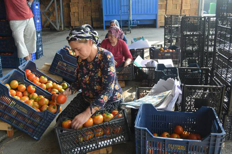 Mersin’in Akdeniz ilçesinde Toptancılar Kompleksi’ndeki Yaş Sebze ve Meyve Hali’nde paketleme işinde çalışan kadınlar, sabahın erken saatlerinde mesaiye başlıyor. Sigortasız çalıştırılan kadınlar, emeklerinin karşılığını alamadıklarını, ağır çalışma koşullarına rağmen düşük ücret aldıklarını söyledi. Halin ardiye kısmında çalışan kadınlar yevmiye usulü çalışıyor ve sebze meyveleri kasalara yerleştiriyor.