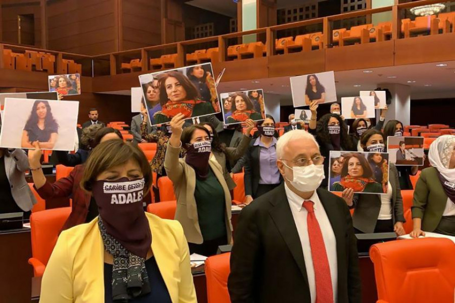 Meclis Genel Kurulu’nda Tarım ve Orman Bakanlığı, Adalet Bakanlığı, Savunma Bakanlığı ve bağlı kuruluşların bütçeleri ile 2020 Kesin Hesap bütçesi görüşülüyor. HDP milletvekilleri, görüşmelere tutuklu kadın siyasetçiler ve katledilen kadınların isimlerinin yer aldığı “Adalet” yazılı fularlarla katıldı. Garibe Gezer ve Aysel Tuğluk’un fotoğraflarını açan HDP'li vekiller, “Cezaevinde olan her ölümden iktidar sorumludur” dedi.
