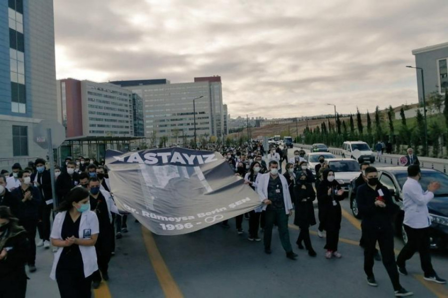 Nöbet sonrası trafik kazasında hayatını kaybeden Dr. Rümeysa Berin Şen için İstanbul Tıp Fakültesi önünde yapılan eylem saygı duruşu ile başladı. Eylemde TTB Merkez Konseyi Başkanı Şebnem Korur Fincancı "Bu çalışma koşulları ile daha fazla böyle sürdüremeyeceğimizi söylüyorduk. 36 saat aralıksız çalıştıktan sonra hastaneden çıkan ve sonra iş cinayeti ile karşı karşıya kalan Dr. Rümeysa Berin Şen ile bunu bir kez daha gördük. 2 hafta önce bu hastanede genç meslektaşlarımız şiddete maruz kaldılar. Meslektaşlarımız tükeniyor, intihara sürükleniyor, ülkeyi terk ediyor ya da istifa ediyor. Sağlığa zararlı bu ortamda bizi çalıştıranlara karşı birlikte olmak zorundayız” dedi.