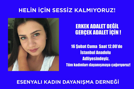 Pendik’te pompalı tüfekle katledilen Helin Palandöken’in ilk duruşması 16 Şubat Cuma günü görülecek. Kadınlar Helin için adalet istiyor.
