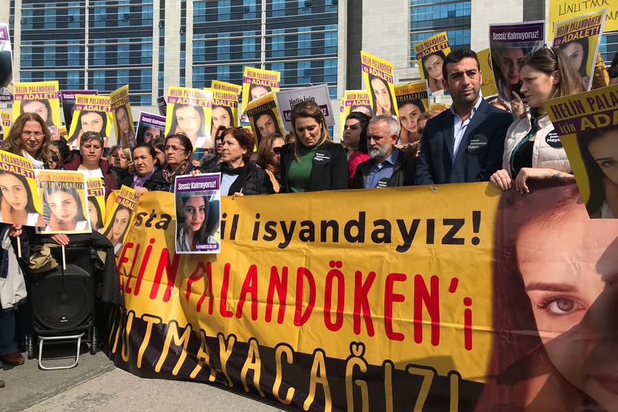 Mustafa Yetgin’in Helin Palandöken’i öldürmek, 2 kişiyi de yaralamak suçuyla yargılandığı dava öncesi Helin’in ailesi, yakınları, arkadaşları, kadın örgütleri ve demokratik kitle örgütü temsilcileri Kartal Adliyesi önünde bir araya geldi. “Helin için susmuyoruz”, “Helin Palandöken isyanımızdır” pankartları açan yüzlerce kişi kadın cinayetlerinin son bulmasını, yargının da kadın katillerine gereken cezaları vermesini istedi.
