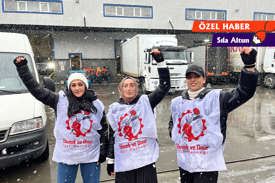 Direnişe geçen kadınlardan Viyan ve Esra’nın anlattığına göre HepsiJET deposunda çalışan 200 işçiden aşağı yukarı 50-60’ını kadınlar oluşturuyor. İşe girdiklerinde üç vardiya çalışacaklarının söylendiğini aktaran Viyan, “Ancak sabah vardiyasını hiç göremedik, sadece 16.00-00.00 ve 00.00-08.00 arası çalıştık. Üç buçuk yıl kadar bu durum böyle devam etti” diyor. Asgari ücretin biraz üzerinde ücret aldıklarını söyleyen kadınlar, çalışma koşullarını anlatmaya başlıyor.
