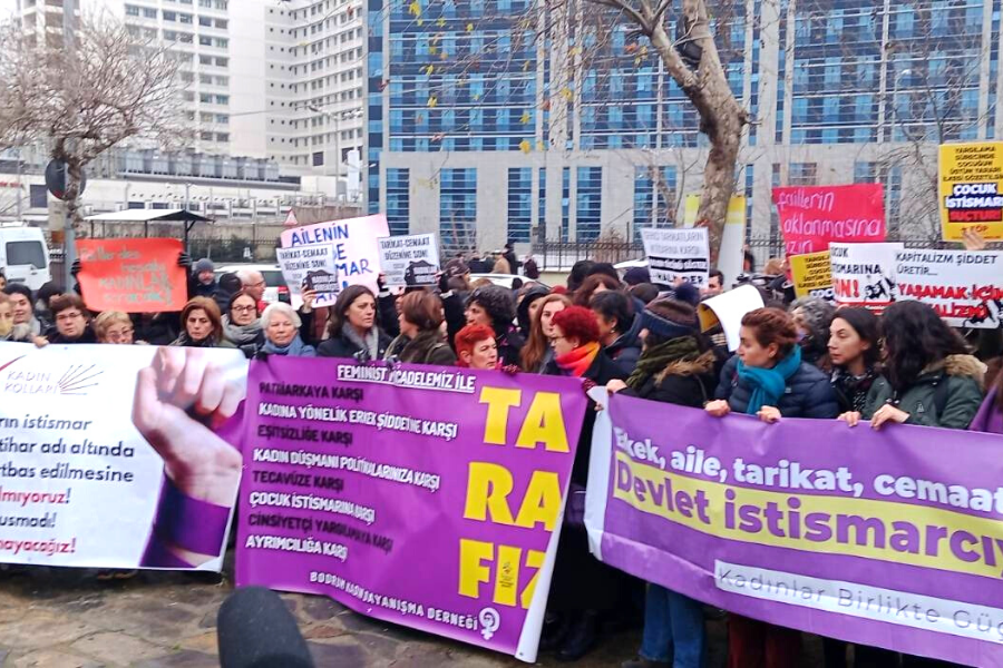 İsmailağa Cemaati'ne bağlı Hiranur Vakfı'nın kurucusu Yusuf Ziya Gümüşel'in 6 yaşındaki kızını evlilik adı altında müridi olan Kadir İstekli'ye cinsel istismar etmek üzere teslim etmesi ile ilgili davanın ilk duruşması bugün Anadolu Adliyesi'nde görülüyor. Saat 10'da başlayacak duruşma öncesi Kadınlar Birlikte Güçlü, Kadın Cinayetlerini Durduracağız Platformu, Bodrum Kadın Dayanışma Derneği, Emek Partisi İstanbul İl Başkanı Sema Barbaros ve Emek Partili kadınlar, CHP Kadın Kolları, Sol Feminist Hareket ve İstanbul Barosu'nun çağrısıyla Adliye önünde basın açıklaması gerçekleştirdi. Duruşma sürecinde avukatların, baroların ve siyasi partilerin davaya katılımı reddedildi.
