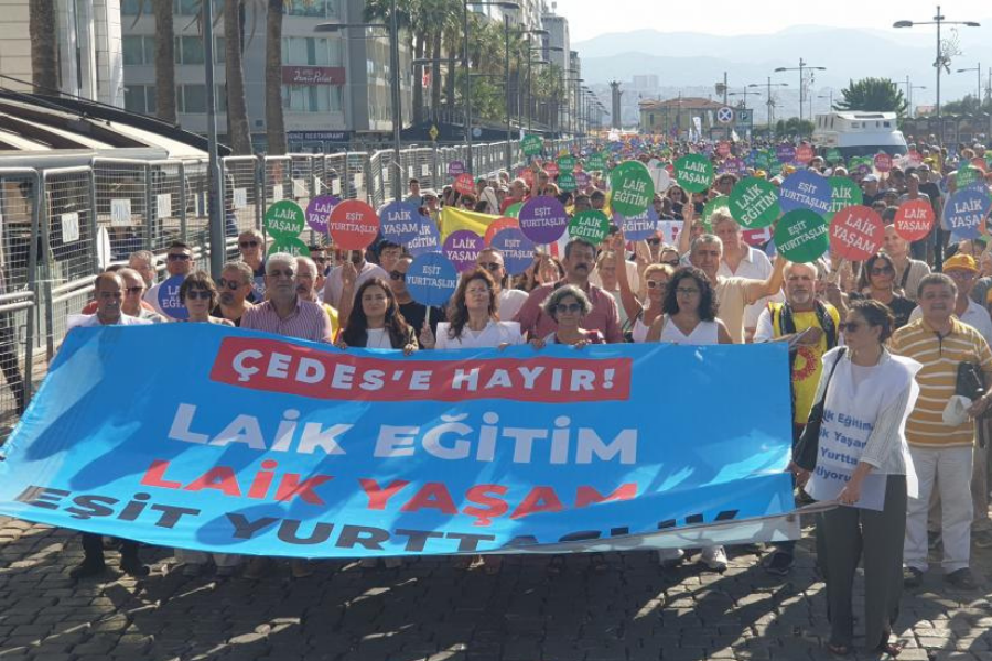 Öğrenci Veli Derneği (Veli-Der) İzmir Şube Başkanı Necati Kalafat, “ÇEDES protokolü ile eğitim sistemini iyice gericileştirmeye çalışırlarken karşılaştıkları tepkilerden dolayı projeyi tabanda genişleterek yaygınlık kazandırma uğraşlarının farkındayız. Milli Eğitim Bakanı tarikatları sivil toplum kuruluşları diye Meclis kürsüsünde anlatırken tarikatlar okullarda çeşitli yöntemlerle kök salmaya, saldıkları kökleri de kalıcı hale getirmeye devam etmektedir. İzmir’de öğrencilerle kurs ve sınav merkezlerinde yapılacak olan yarışma, bu durumun yansımasından başka bir şey değildir. Çocuklarımızın nitelikli eğitime olan ihtiyacı sadece onların değil, ülkenin geleceğinin de ihtiyacıdır. Denetlenemeyen, pedagojik formasyonu olmayan unsurların; içinde sadece din motifleri geçiyor diye okullarda çalışma yürütmesi, büyük sorunlar doğurabilecek bir hatadır. Çocuklarımızın başına bir şey gelmesini engelleyecek güce sahibiz, onlar asla yalnız değiller. Bu süreçleri günbegün, proje proje takip etmekteyiz ve yasal haklarımızı sonuna kadar kullanmaktan çekinmeyeceğimizi bilmenizi isteriz. Bu ülke, bu kent ve bu çocuklar sahipsiz değillerdir” dedi.