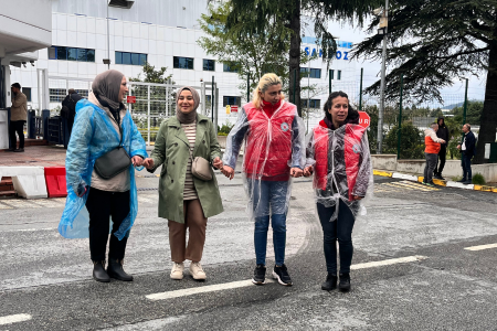 Lezita işçileriyle dayanışmaya giden kadınlara sendikacı müdahalesi