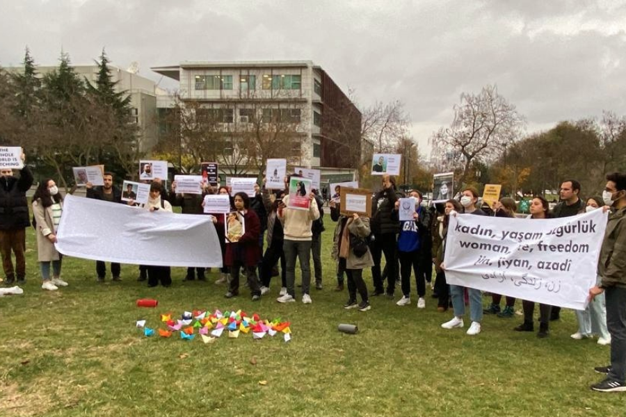Mahsa Amini’nin İran ahlak polisleri tarafından katledilmesiyle başlayan, sonrasında başta kadınlar olmak üzere İran halkının birçok kesimine yayılan protestolara İstanbul Teknik Üniversitesi’nde, destek eylemi ve basın açıklaması gerçekleştirildi. Mahsa Amini ve katledilen 400’ün üzerinde insan anıldı ve İran İslami rejimi protesto edildi. Türkiye uyruklu öğrencilerin de destek verdiği eylem, “Tutsaklara özgürlük” ve “özgür demokratik İran” sloganlarıyla ve İran direnişinde öne çıkan protesto marşlarıyla sonlandırıldı.