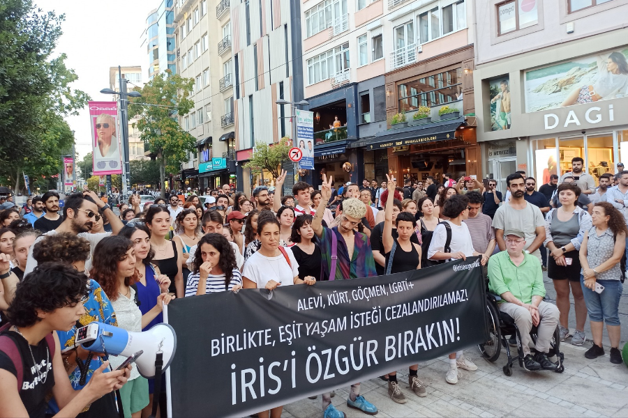 Basın açıklamasında, “İris’in eleştirilerinin hepsi ifade özgürlüğü kapsamındadır. Halkı kin ve düşmanlığa tahrik eden İris değil, savaş ve ırkçılık nedeniyle güvencesiz bir şekilde dünyada var olmaya çalışan mültecilere saldıranlardır. İris’in mahkeme heyetine sorduğu gibi biz de soruyoruz ‘İnsanlar ev yaktılar, pogrom yaptılar ve adli kontrolle serbest bırakıldılar, İris ise bunları yazdığı için mi tutuklanıyor?’ Mültecilerin yaşam alanlarına, iş yerlerine ve canlarına kast eden bu saldırganlar, toplumsal barış için ‘yakın tehdit’ oluştururken çoğu gözaltına alındıktan sonra salıverilmiş; arkadaşımız İris ise tutuklanarak Bakırköy Kadın Kapalı Ceza İnfaz Kurumu’na götürülmüştür” ifadelerine yer verildi.